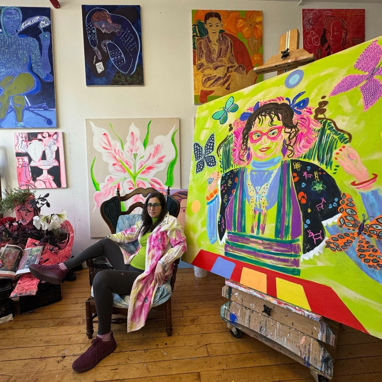 Heidi Howard is a New York-based painter who creates vibrant and intimate portraits of friends and family. Her figurative work draws on the intimacies of friendship as a foundational element to produce vivid and gestural portraits which bridge aspects of representation and abstraction. Through the interaction of textures, pattern, mark making, and rendering space, each of Howard’s paintings is a collaboration with her sitter. Extending beyond typical conventions of portraiture, Howard’s paintings create a unique and emotive structure based on the color feelings, style, and qualities of her subjects.