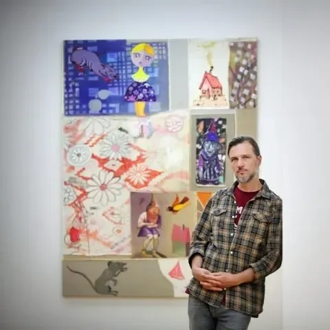 Mannig’s multi-directional working process typically begins with the extensive organizational system built out of his drawings. Through constructing a cast of figures- mischievous rats, malevolent onlookers, naïve mice, sultry cats, caregivers, gnomes, animated objects and living landscapes, his works on paper are re-rendered and incorporated into his paintings as new narratives. In his paintings and works on paper, Mannig lets loose of any preconceived notions of narrative and opens up the possibility to see something anew and to value curiosity, if even bordering on mischief and experiment over the logical and known. Mannig’s worlds are hybrids, transformed, and metamorphosed to make the familiar foreign and the foreign familiar.